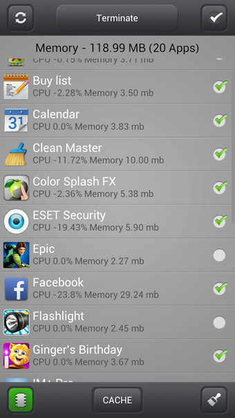 Esta utilidad te permitirá gestionar las aplicaciones que se están ejecutando en tu dispositivo. También puede añadir las aplicaciones a la lista de excepciones, por lo que no tendrá que preocuparse de que se ejecuten todo el tiempo.